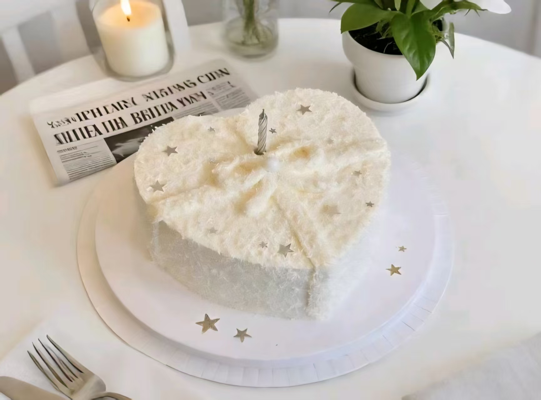 ins风爱心毛茸茸椰蓉生日蛋糕